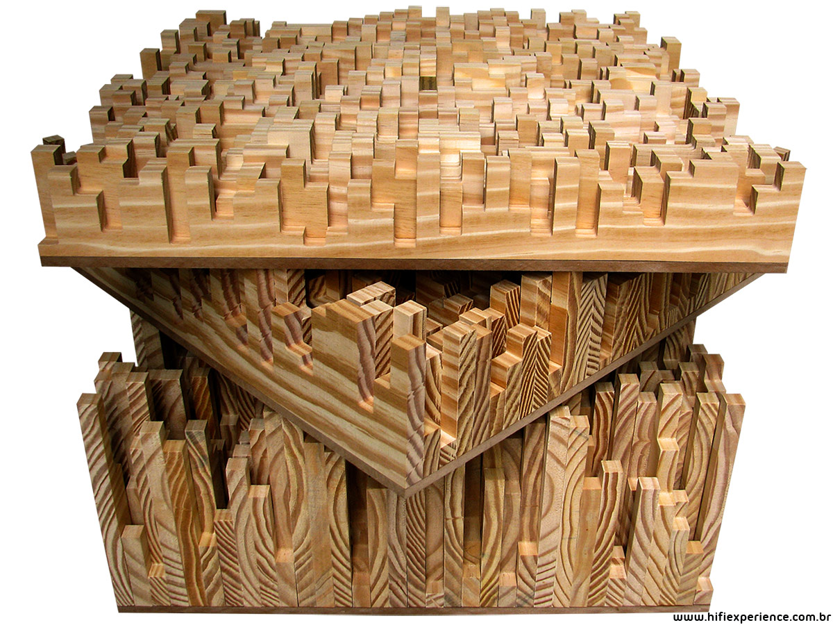 O difusor acústico modelo S2 tem apenas 9 cm de profundidade e é ideal para ambientes de dimensões reduzidas. O condicionamento acústico de uma sala destinada à audição, por exemplo, é indispensável para que o potencial de um sistema High-End não seja subaproveitado, pois a qualidade do som escutado num ambiente é definida pelas propriedades do campo sonoro produzido pelas caixas acústicas dentro do espaço em questão. Todos são capazes de reconhecer os benefícios que um tapete traz à sala de audição, e é importante lembrar que ele reduz apenas a coloração gerada pelas reflexões especulares do piso. Ao menos outras cinco superfícies lisas e rígidas (paredes e teto) prejudicam a percepção da imagem estereofônica, pois agregam Reflexões Primárias e reverberação ao Som Direto das caixas acústicas. Quando painéis difusores acústicos são instalados em pontos específicos dessas áreas o som é fragmentado espacialmente/temporalmente, evitando que as reflexões geradas por essas superfícies afetem a clareza que um sistema High-End oferece. O difusor é feito com peças de madeira de reflorestamento tratada contra a ação de pragas como cupins e brocas. A estrutura traseira de fixação possibilita que o painel seja instalado nas paredes, através de furos oblongos; no teto, pendurado por olhais de suspensão; ou em carrinhos com rodas, preso pelas roscas M10 destinadas aos olhais, mas com parafusos sextavados. |